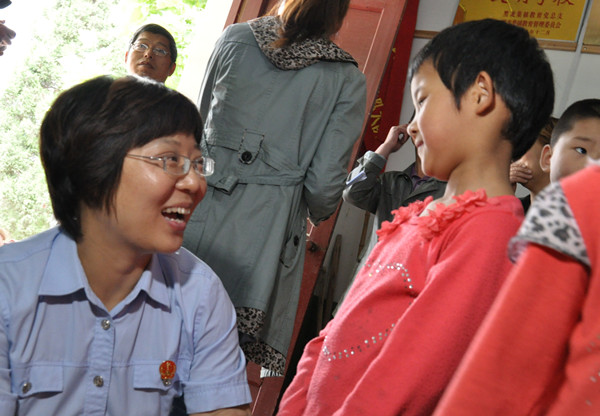 5月30日,襄州法院15名法官志愿者为襄州区石桥镇黑龙集小学的15名留守孩子送来了书包、运动服、运动鞋、文具等节日礼物,并与留守孩子们结成帮扶对子,现场认亲,成为留守儿童的爱心爸爸、妈妈。