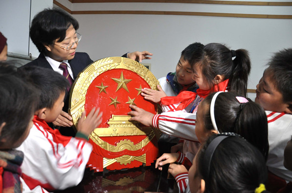 当天一大早,院办公楼内的法官们迎来一批特殊的客人,他们是应邀参加该院 “公众开放日”活动的78名襄州区实验小学六年级学生和部分人大代表、媒体记者。