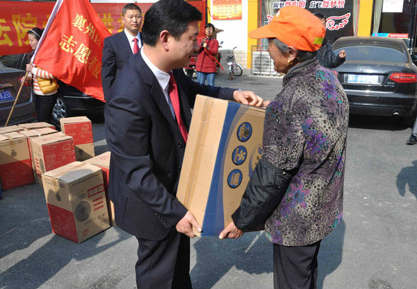 襄州区法院党组书记、院长徐俊向潘台社区居民送来生活物资,帮助群众达成微心愿