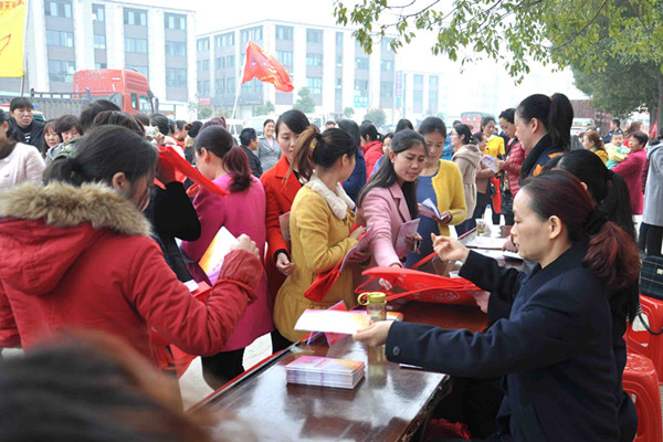 3月4日,襄州法院妇委会组织法官志愿者走进云湾社区,开展三八妇女维权周暨《反家庭暴力法》宣传活动。