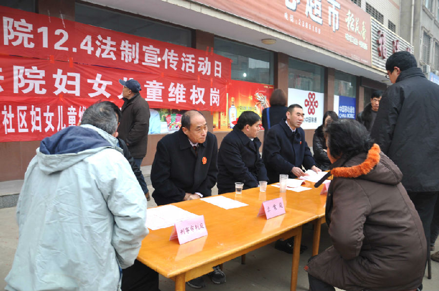 当天是全国第十二个“12.4”全国法制宣传日,也是我国现行宪法颁布实施30周年纪念日。在张湾办事处金华社区门口,“襄州区法院妇女儿童维权岗”和“襄州区法院12.4法制宣传活动日”的条幅格外醒目。上午一大早,该院法制宣传咨询台前便围满了群众,法官们一边向群众发放诉讼指南、妇女儿童权益保护等相关宣传资料,一边耐心解答来访群众的咨询。当天的法制宣传日活动,该院共发放宣传资料800余份,解答群众法律咨询30余人次,受到群众普遍欢迎。