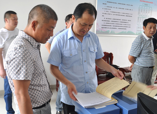 雷涌泉副院长在张湾社区查看调解工作台帐