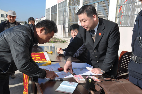 襄州区法院执行法官早早来到青山村委会布置兑付会场
