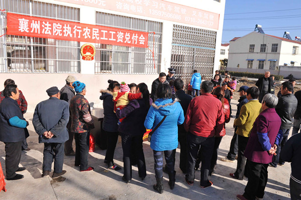 当日上午,为方便农民工领回执行款,襄州区法院执行法官驱车40余公里,将工资款送到他们的家门口。