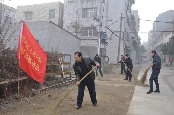 1月12日,襄州区法院组织法官志愿者利用周六休息日走上街头,积极参与全区“洁城行动”,义务清洁辖区卫生。该院在清洁包保区道路、施工现场及清理乱贴乱画现象的同时,还向过往群众进行洁城行动宣传教育,引导群众爱护环境,美化家园,实现全民参与。